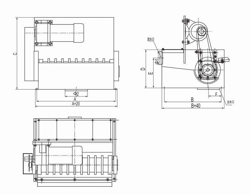 | 型號 | 流量 | A | B | C | D | E | 進水口 | 電機功率 |